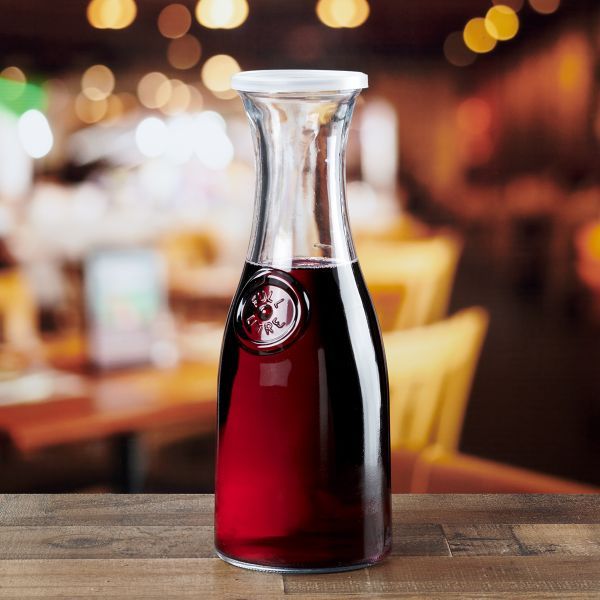 This Anchor Hocking 1 liter glass carafe will add an elegant, distinctive element to your dinner table. An excellent time-saver, this sleek carafe is perfect for serving wine, coffee, juice, and iced tea. Includes lid. Glass is dishwasher safe.