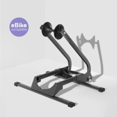 Easy parking solution for any bike. Wide base with triangulated arms holds bikes firmly Infinitely adjustable to hold any wheel size Shop Rack Connectors can be used to connect racks Industrial-grade powdercoated steel & custom arm covers No tools assembly 22" x 15" x 17" / 560 x 380 x 430 mm