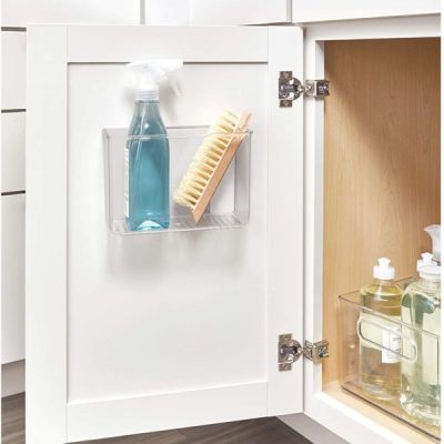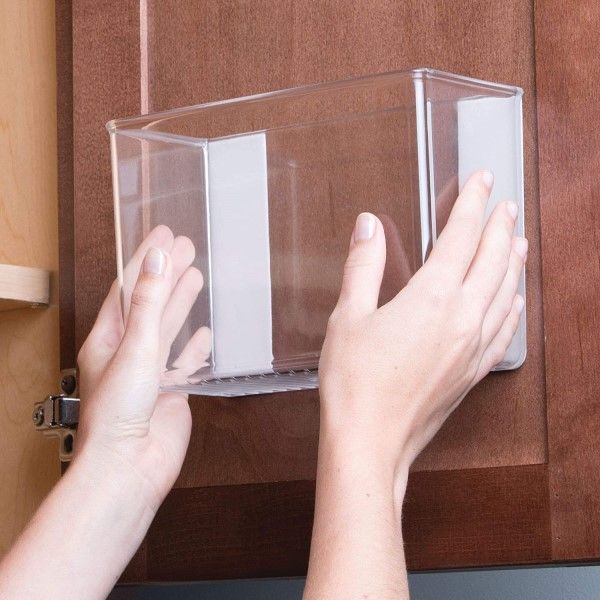 Clear plastic holder is perfect for organizing all your home essentials. Ideal for use in kitchen, pantry, cabinets, bathroom, bedroom, office, mudroom, craft room, college dorm room, or school locker - Works on metal, mirrors, glass, tile, fiberglass, and wood surfaces - Just peel and stick! - Strong plastic construction stands up to daily use - AFFIXX adhesive backing has a super strong hold and is damage free, removes cleanly, and leaves no residue Measurements 8 x 3.5 x 5.5in - 20.32 x 8.89 x 13.97cm