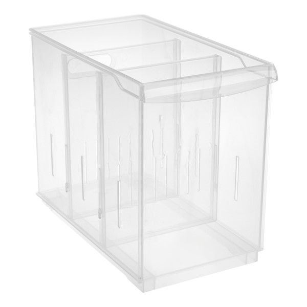 This super tall container is suitable for pasta and other tall packets. One side has an integrated handle to 'pull' off the shelf; the other side has a cut out handle which allows you to lift heavier loads. Built in rollers provide smooth movement on your pantry shelf.