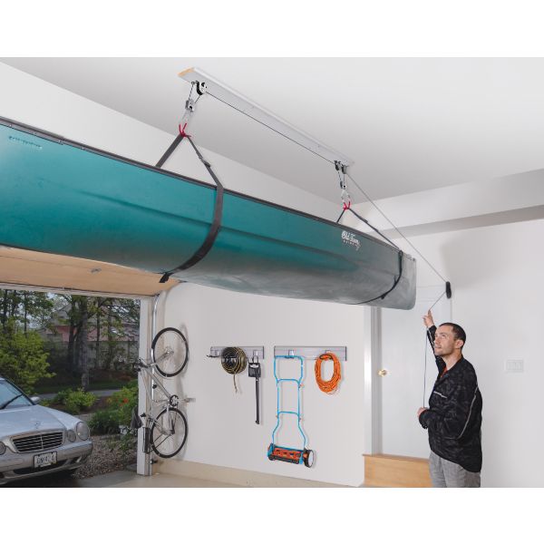 Easily able to hold a bicycle, kayak, ladder, etc., the El Greco ceiling hoist has been engineered for long and durable performance. Pulley system that allows you to lift and lower heavier objects; store out of the way and never worry about them until needed. Includes mounting hardware and full instructions Clever auto-locking mechanism prevents accidental release Maximum load 50lbs / 23Kgs Maximum ceiling height 14 ft / 4.2m 48 ft / 14.6m premium quality two core woven rope