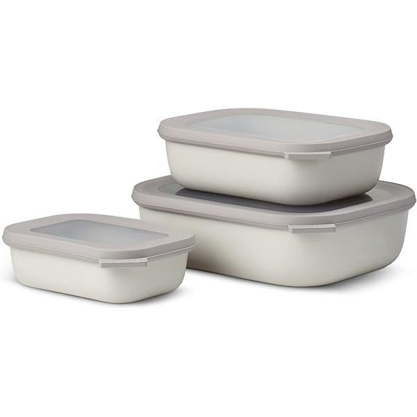 The rectangular bowls can be cleaned in the dishwasher. Afterwards, the bowls and their lids can all be nested inside each other for efficient storage! The Cirqula is leakproof, airtight, and aroma tight, so your food stays fresh. Another great feature: a transparent lid that allows you to see what's in your fridge or freezer at a glance! Three sizes to give you a choice for lunch containers.