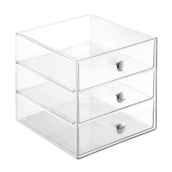 The Original Three Drawer Organizer is the perfect way to keep makeup and accessories conveniently stored, it will look great on any counter! Modular storage with sleek, clean lines offers efficiency and easy, see-through surfaces for customizable bathroom organization.