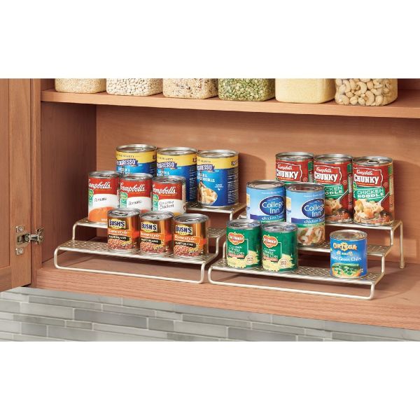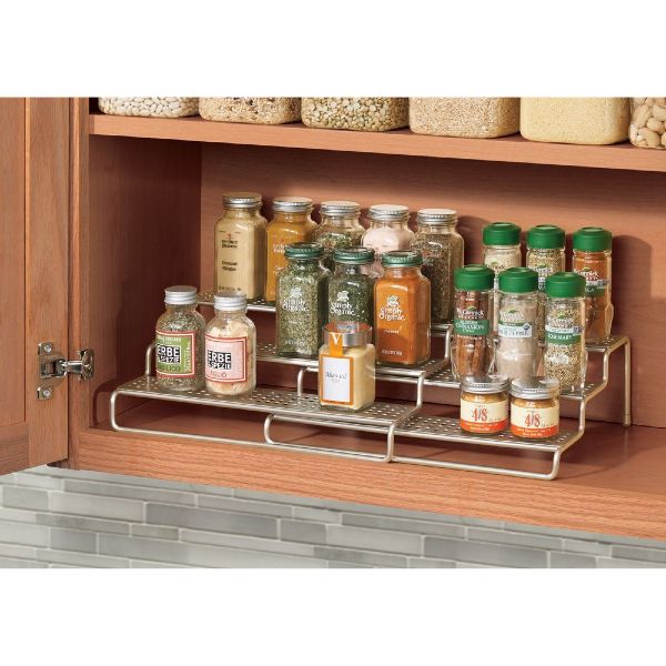 Modernistic styling and durable steel lend a sleek culinary look to kitchen pantry storage. Expandable Spice rack Three tiers of shelving Made of steel: silver finish 12.5 x 9.89 x 4.07 IN / 31.75 x 25.13 x 10.34cm Expands to 24.5 IN / 62.23cm wide