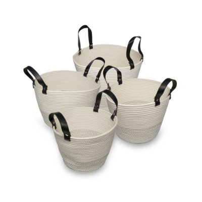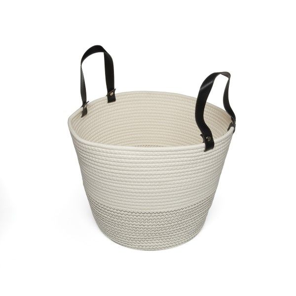 This attractive two-tone basket is made from 100% cotton rope – sustainably farmed and completely renewable. The dark overstitch on the lower layer creates the two-tone appearance. Black leather look handles add a sophisticated element to the basket.