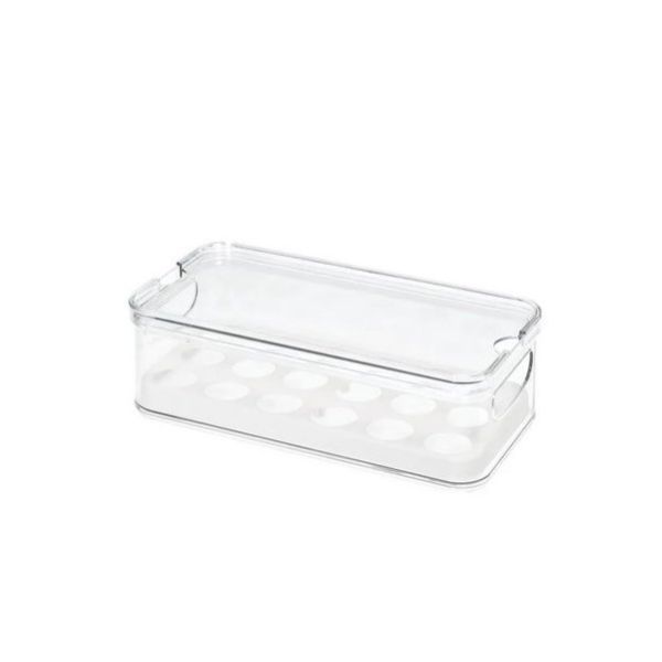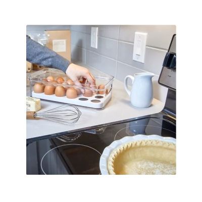 Create a clean & organized fridge. Lid is indented to allow stacking or for use as a shelf Holds 18 eggs at a time