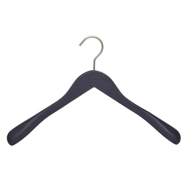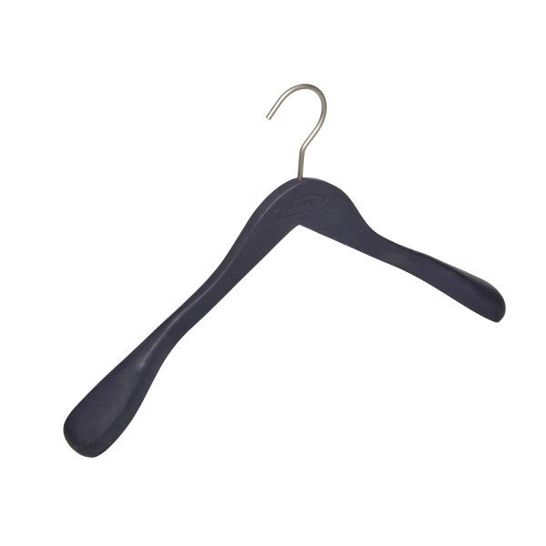 The elegant, handsome hand-crafted wood clothes hanger keeps your jackets and shirts neatly in place. It is made from strong, high-quality wood that can be used to hang your heaviest clothes. The smooth rounded edges preserve your clothes neatly without creasing them. The finishing touch is the non-slip coating in Dymon Blue. This coating keeps even the most delicate of clothing firmly in place.