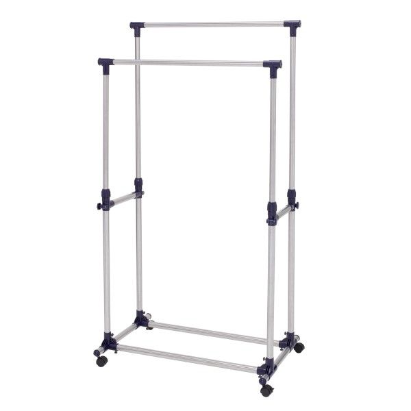 This elegant clothes rack is handy for rooms with no closet, hanging seasonal clothing, even in the laundry room to hang clothes to dry. Equipped with locking wheels, this cart is ready to move wherever you want it to go - and locks in place when you are done. Be sure to stagger the heights of the two clothes bars to make the most of the hanging space