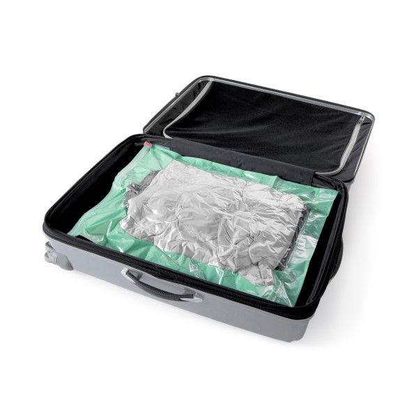 Perfect for creating more packing space when you are going on holiday. Fill the bag, roll the bag from the sealed end, once the air is expelled, seal the zipper almost completely and push a little more air out – complete the seal and you are ready to go. You will be able to pack 50% more clothes for your holiday or leave space to bring back some holiday finds! This works well for backpacks and suitcases. May also be used to keep clean clothes separate from those you have already worn.