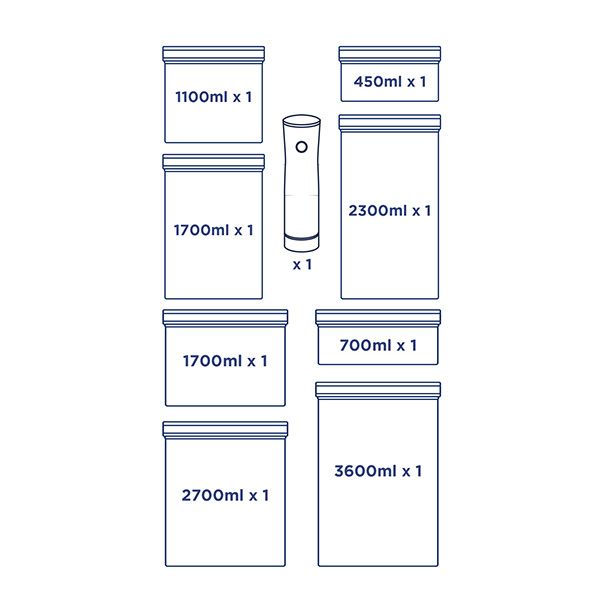 This 9-piece set includes 1 rechargeable vacuum pump and 8 containers: