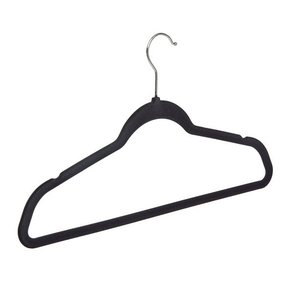 Our Yorkville Velvet Hangers feature a soft-flocked finish to keep clothes in place, and a slim profile to maximize closet space. This space-saving design is made of durable ABS plastic and covered in a velvet-like finish to keep clothes in place and look great doing it. Notches on the arms secure small straps.