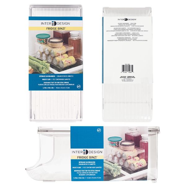 The durability of plastic boasting a modernistic linear pattern offered in compact kitchen storage. Refrigerator storage bin Holds up to nine cans Tray on top for more storage Hand wash only Made of durable, BPA-free plastic 13.75 x 5.75 x 5.75 IN / 34.92 x 14.6 x 14.6cm