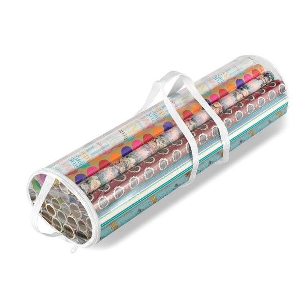 Lightweight construction.Handles for easy portability.Zippered top to protect against dust & moisture.Stores up to 25 standard (30in - 76cm) rolls of gift wrap