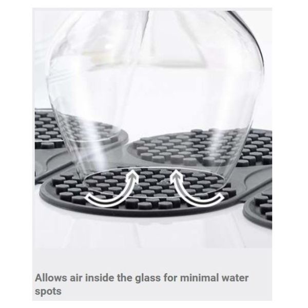 Wash your glasses and place them on the raised surface, which allows your pieces to air dry with minimal water spots.