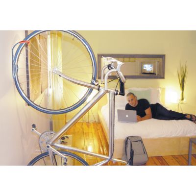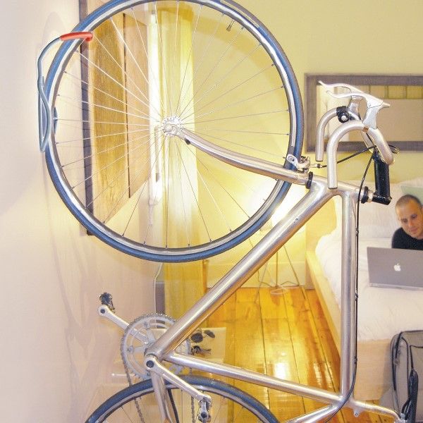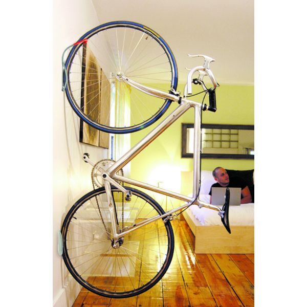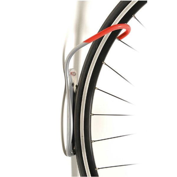The Leonardo single bike storage hook has been our best-selling bike storage product for years. Featuring elegant space-saving design Tray available to save your wall from tire marks Tough silver powder coat finish Rubberized coating protects wheel rim Works with tires up to 2.5 IN wide / 6.3cm Maximum load 40lbs (18Kgs)