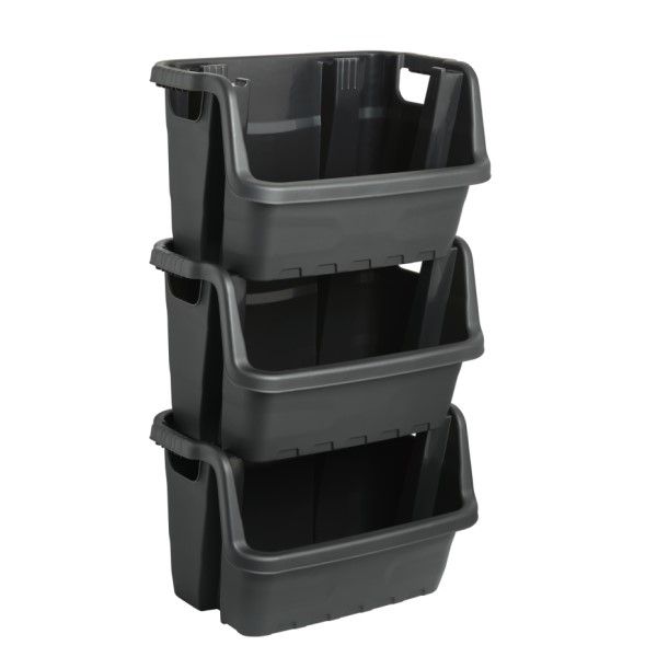Built in handles for easy carrying. Deep front opening for easy access when stacked. Buy multiple units for stacking. Made from recycled materials 23.2 x 16.1 x 14.2 INH / 59 x 41 x 36cmH
