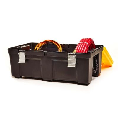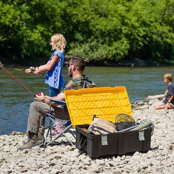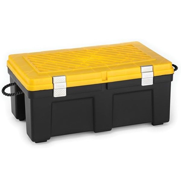 The Durabilt foot locker from Homz is the heavy-duty way to store your belongings securely. The lid features metal latches to keep it securely closed and can be pad-locked. With rope handles. 32.5" x 18.75" x 13"