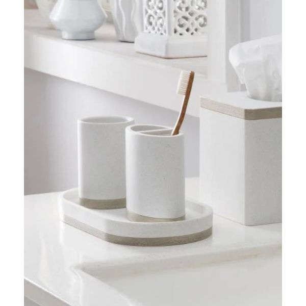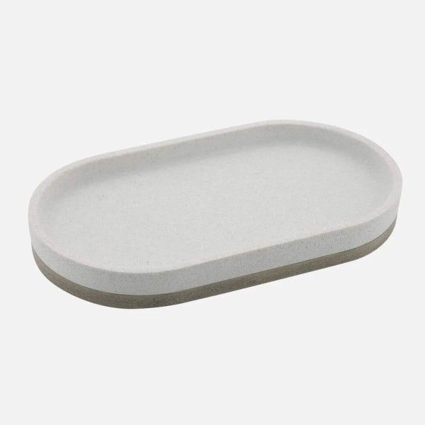 This resin collection has the look and feel of natural stone, without the weight or breakability. The accessories tray measures 13.9 x 25.4 x 2.5cm - 5.5 x 10 x 1in Complete your bathroom makeover with the rest of the pieces in the Hudson Collection, each sold separately