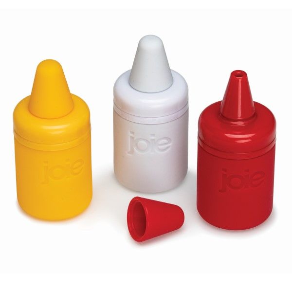 Iconic shape mustard, mayo and ketchup squeeze bottles sized for on the go.