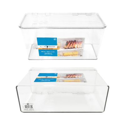 Simple styling and convenient see-through surfaces in customizable kitchen organization solutions. Portable pantry storage organizer bin Easy-open hinged lids Made of durable, BPA-free plastic Holds 6.6Qt / 6.25L 5.5 x 13.3 x 7 IN / 13.97 x 33.78 x 17.78cm