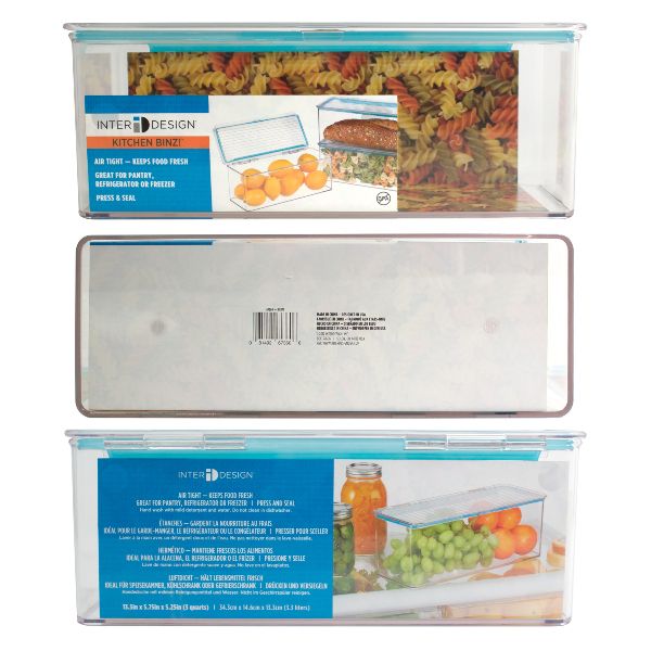 Clear surfaces, a durable construction and an air-tight seal provide quick and easy storage for the kitchen. Air-tight design keeps food fresh Use in refrigerator, freezer, pantry or cabinet Hinged lid; stackable design Made of durable BPA-free Resipreme Hand wash only 3Qt / 2.8L 13.5 x 5.75 x 5.25 IN / 34.29 x 14.6 x 13.34cm