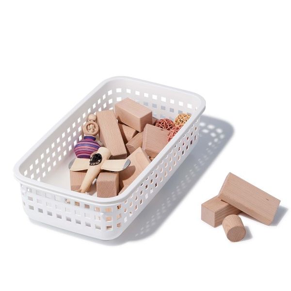 This stylish multi purpose basket is available in three sizes and two colours. Use to sort laundry, store toys or hold anything that needs to be kept in place. This basket can be used on a shelf or stacked on top of the handles of larger baskets