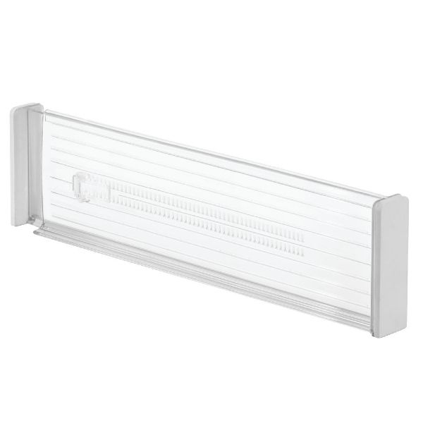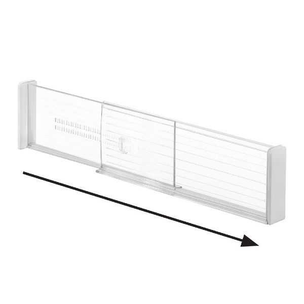 Innovative drawer organization with a user-friendly construction and useful versatility. Lift the lever, adjust to fit, lock in place Soft foam ends protect drawers from scratches Made of durable plastic Set of two deep drawer dividers 13.6 x 4.25 INH / 34.6 x 10.8cm Extends to 20.75 IN / 52.7cm long