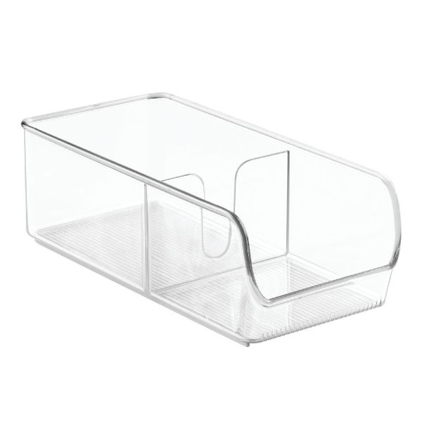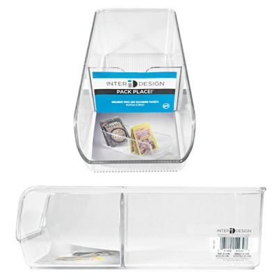 Compact kitchen storage with a slim design and an efficient solution to keeping spice and tea packets organized. Food packet organizer bin Two divided compartments Ribbing detail on the bottom Made of BPA-free Resipreme Plastic 5 x 10.5 x 3.5 IN / 12.7 x 26.67 x 8.89cm