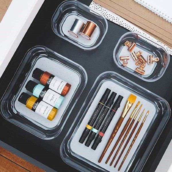 Eliminate clutter in any drawer. These sturdy organizers offer flexibility for storing kitchen utensils and gadgets, craft supplies, jewelry or accessories. Soft lining that prevents scratches. Non-slip rubber feet Combine different sizes to create a customized solution for each space - # 10850, 10851, 10852, 10853, 10854 5.25 x 3.19 x 1.88 IN / 13.34 x 8.10 x 4.76 cm