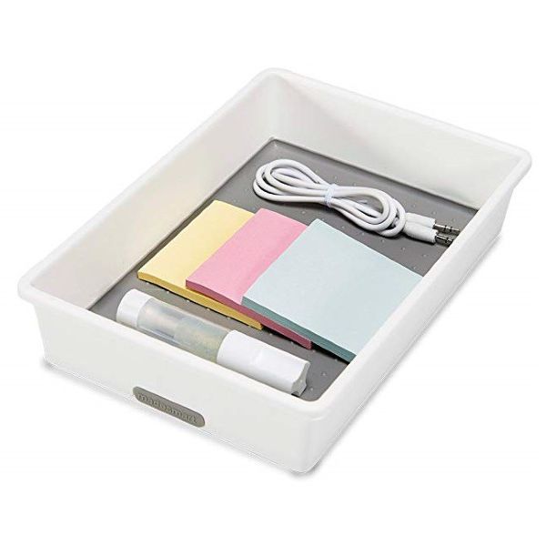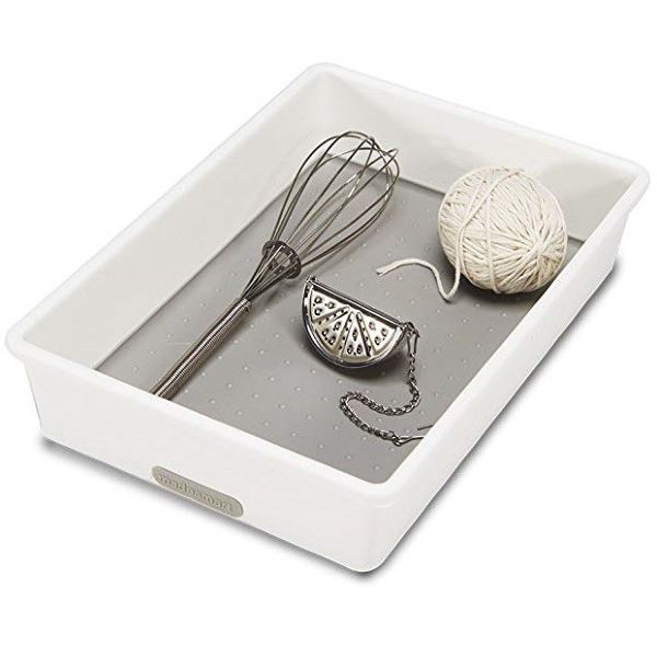 A versatile bin that can be used to organize drawers throughout the entire home. Soft-grip lining and non-slip rubber feet ensure that items stay in their place. Rounded corners allow for easy use and cleaning Made of high-quality, BPA-free plastic for long lasting organization. Non skid feet to prevent shifting Antibacterial gray over mold Use with items 10836, 10837, 10838, 10839 to customize your drawer 9.75 x 6.75 x 2.13 INH / 24.77 x 17.15 x 5.41 cm