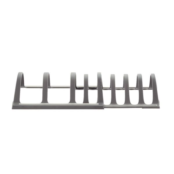 The Expandable Bakeware Stand keeps bakeware, cookie sheets, and casserole dishes orderly and easily accessible. Easily expands to fit most cabinets, making for instant, easy installation. Divided slots adjust to fit your bakeware organization needs Soft grip features keep items protected and in place. 15.40 x 11.20 x 4.50 IN / 39.12 x 28.45 x 11.43 cm Expands to 25 IN / 62.87 cm