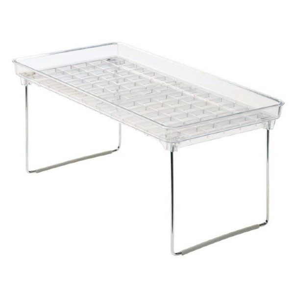 These clear stackable shelves help maximize your space. Rubber feet to keep things in place Folds flat when not in use. Each shelf can hold 25 lbs. / 11.34 kg Made of high-quality, BPA-free plastic 14.59 x 7.72 x 7.06 IN / 37.07 x 19.61 x 3.81 cm