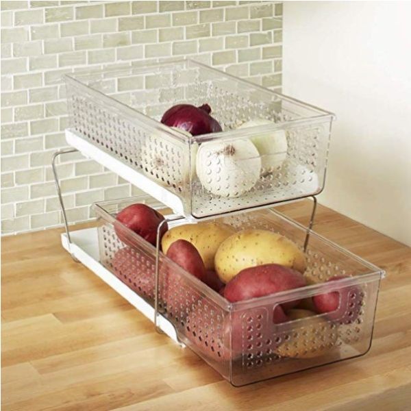 The madesmart Two-Tier Organizer is a multipurpose storage system Includes two pull-out bins. Holds up to 30 lbs./ 13.6 kg For use under sink or vanity 14.38 x 9 x 10.25 inH / 36.51 x 22.86 x 26.99 cm