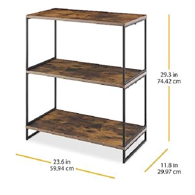 High-quality materials deliver an industrial, stylish look Convenient storage for entryway and beyondAssembly is easy with tools included Made with a durable steel frame and woodgrain laminate shelves Assembled Dimensions: 11.8 L x 23.6 W x 29.3 H inches - 29.97 X 59.94 X 74.4CM Fits 11 inch totes, sold separately