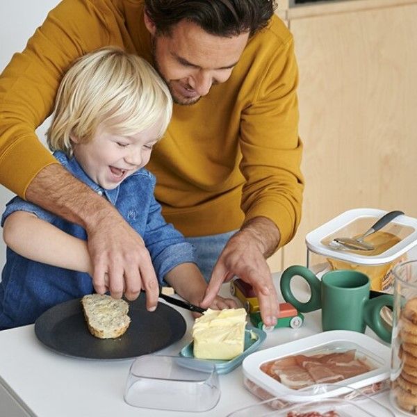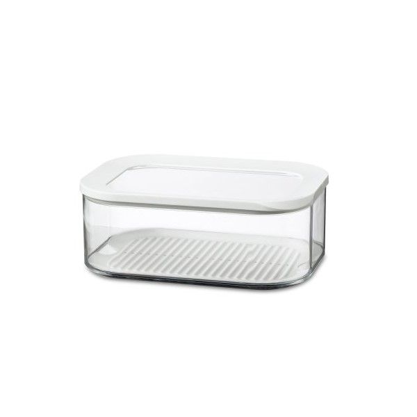 Transparent lid allows you to see contents even when stored in a drawer. The white ring provides a perfect fit, which makes this box ideal for storing dried foods such as pasta, flour, sweets & biscuits. Available in an assortment of sizes. Not for use in a freezer, or a microwave. 100% BPA Free Measures 22.4 x 16 x 8.6cm - 8.8 x 6.3 x 3.4in Made in Holland