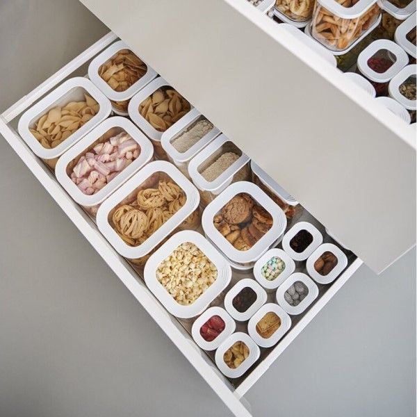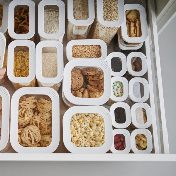 This small rectangular (175 ml / 6 oz ) box has rounded corners and its transparent lid allows you to see its contents instantly, even in your kitchen drawer. The white ring provides a perfect fitting which makes this small box ideal for storing dried food such as pasta, flour, biscuits or packets of soup.