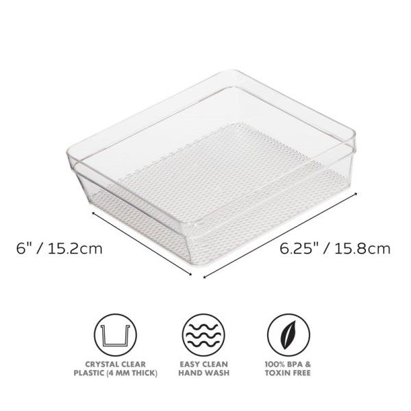 Ideal for bathroom, kitchen, office and more. The different sizes can be combined to accommodate the contents of the drawers - each sold separately.BPA free.Measures: 15.2 x 15.2 x 4.4cm - 6 x 6 x 1.7in
