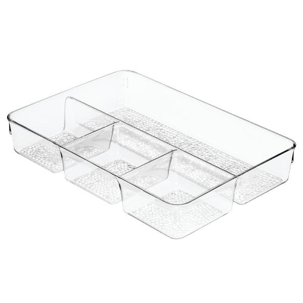 Simplify drawer storage and make things easier to find. Rain bathroom drawer Organizer helps get your bathroom drawer space organized. The 2 -inch tall drawer organizer is made from strong, high quality plastic and is sized to fit all standard sized drawers.