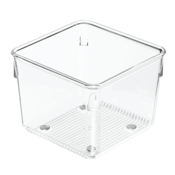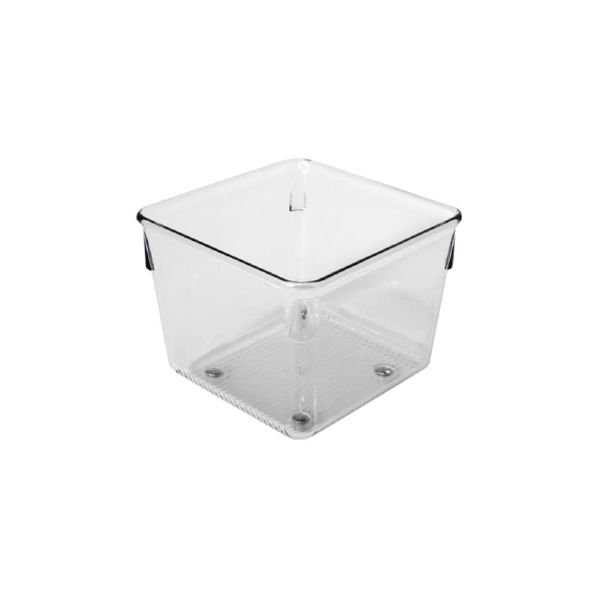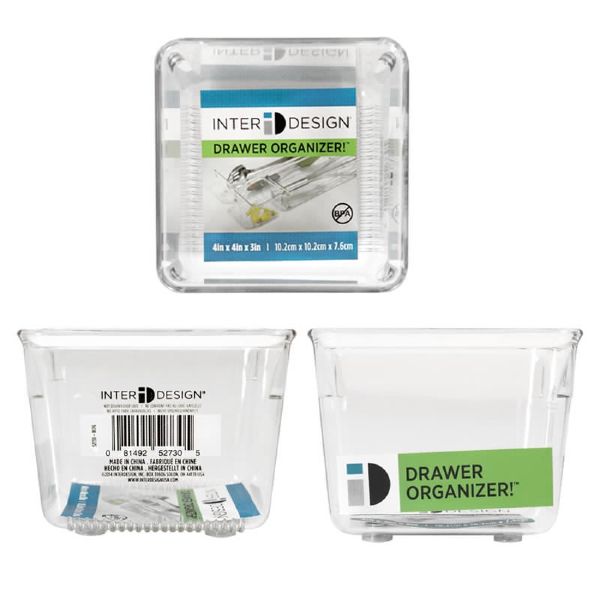 Kitchen drawer organization offering a clean look and transparent surfaces for easy visibility. Drawer organizer bin Fits most standard size drawers Non-skid feet Made of durable, BPA-free plastic Customize your space; combine any of the following - # 10992, 10993, 10994, 10995 4 x 4 x 3 IN / 10.16 x 10.16 x 7.62cm