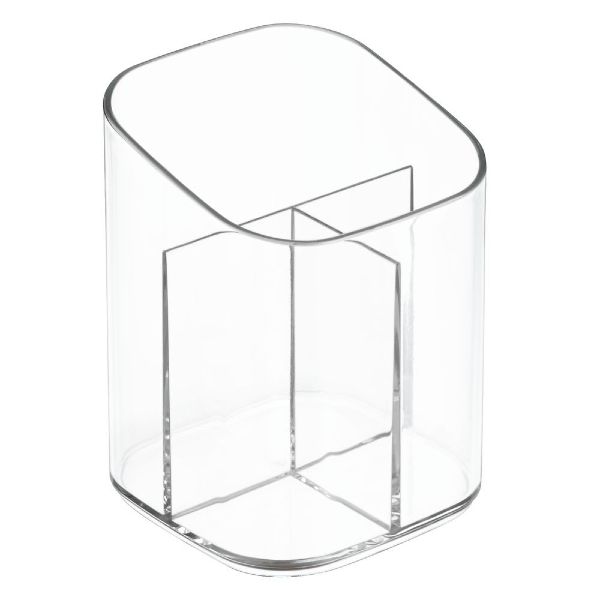 The Clarity Cosmetic Cup is the perfect way to keep your vanity organized. Three compartments for easy organization Made of clear plastic 3.5 x 3.5 x 4.5 INH / 8.9 x 8.9 x11.4cm
