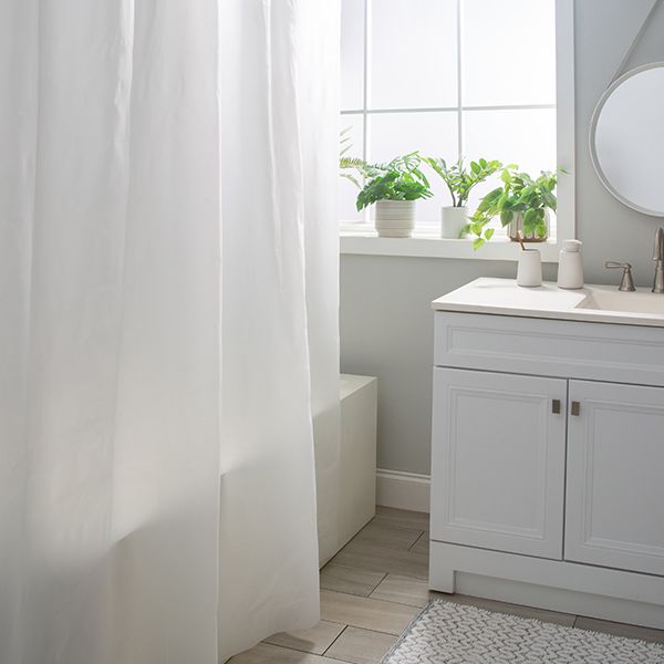 Convenient and durable, the Coronet PEVA 8G shower liner, measuring 72" W x 72" H, fits standard shower or tub sizes, compatible with both straight and curved shower rods. It features 12 rust-proof metal grommets and a reinforced header to prevent tearing and ensure long-term functionality.