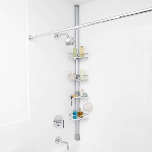 With easy-to-install double-extend design and sleek, rust-proof anodized aluminum construction, the OXO Good Grips Quick-Extend Aluminum Pole Caddy solves any shower storage shortage – and looks good doing it.