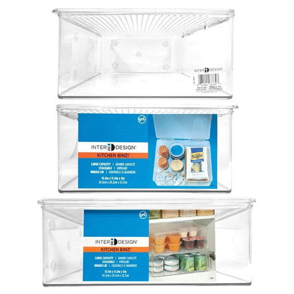 Simple styling and convenient see-through surfaces in customizable kitchen organization solutions. Portable pantry storage organizer bin Easy-open hinged lids Made of durable, BPA-free plastic Holds 10.3Qt / 9.8L 11.3 x 13.3 x 5 IN / 28.7 x 33.78 x 12.7cm