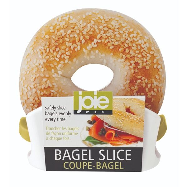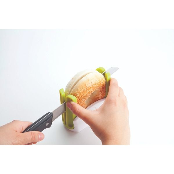 Safely slice bagels evenly every time. Guide arms fold for easy storage.