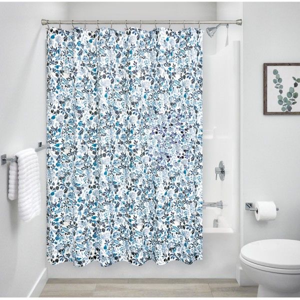 The classic floral print of this iDesign Shower Curtain brings a bold and beautiful look to any bath space.On trend, yet classic, This curtain is perfect for full or half baths, kids' bathrooms, and master or guest baths alike. This fashion-forward print complements almost any bathroom décor style. This curtain hangs by twelve reinforced buttonholes and is easy to install. The use of a liner with this shower curtain is recommended. With iDesign, you can live simply every day. EXCEPTIONAL QUALITY: Crafted from long-lasting polyester that drapes beautifully, this shower curtain creates an instant style statement; This shower curtain withstands damp, moisture-rich bathroom environments; A shower curtain liner is recommended REINFORCED BUTTONHOLES: This curtain hangs by 12 reinforced buttonholes and works with most types of shower hooks or rings for quick and simple installation (hanging rings/hooks are not included); The 1 ¼ top hem is reinforced for long-term use; Make a vibrant statement at home, in college dorm rooms, or wherever you need a reliable shower curtain DURABLE CONSTRUCTION: Made of 100% woven polyester fabric; To care for your shower curtain, be sure to machine wash cold with like colors and tumble dry low Measures 72x72in