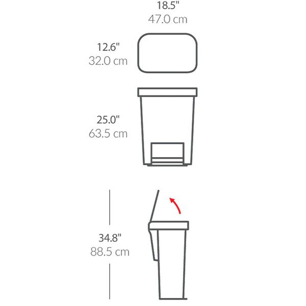 Lid open: 34.8 inches / 88.5 cm H