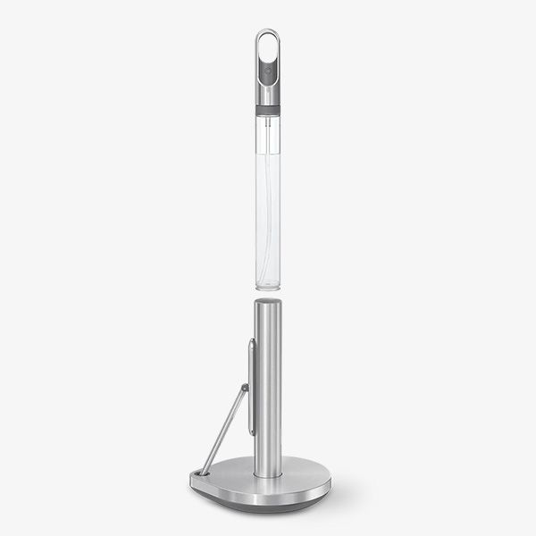 Everything you need for a quick, easy cleanup is right at your fingertips with the world’s first all-in-one paper towel holder and spray pump! The holder’s perfectly balanced tension arm allows for one-handed tearing of paper towels, and a single push unlocks the integrated pump stealthily concealed in its center. The pump’s ergonomically designed trigger smoothly delivers a continuous fine mist of cleaner that covers dirty, greasy surfaces. Pair with our specially formulated multi-surface cleaning tablets as well as our 90% recycled high-performance paper towels for a sustainable cleanup solution. Brushed stainless steel finish. 8.1W x 7.1H inches / 20.6W x 38.1H cm