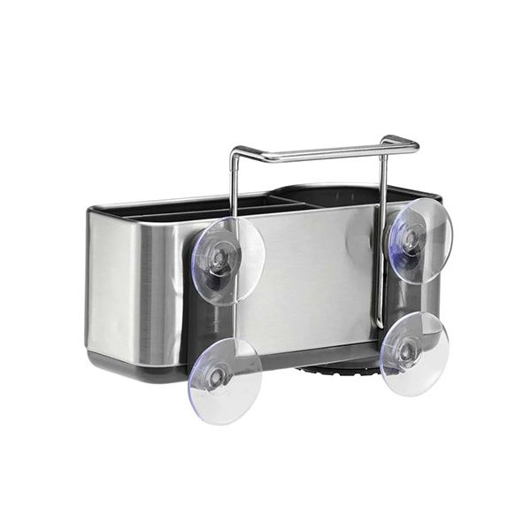 This simplehuman sink caddy keeps your sink area neat and everything you need within easy reach. Four suction cups and a wire ledge hanger provide a secure, non-slip grip on your sink. Elevated plastic dividers store and organize sponges separately while numerous venting holes maximize airflow to help them dry quickly minimizing bacteria growth. 7.6W x 5.6D x 7.5H inches / 19.4W x 14.3D x 19.1H cm