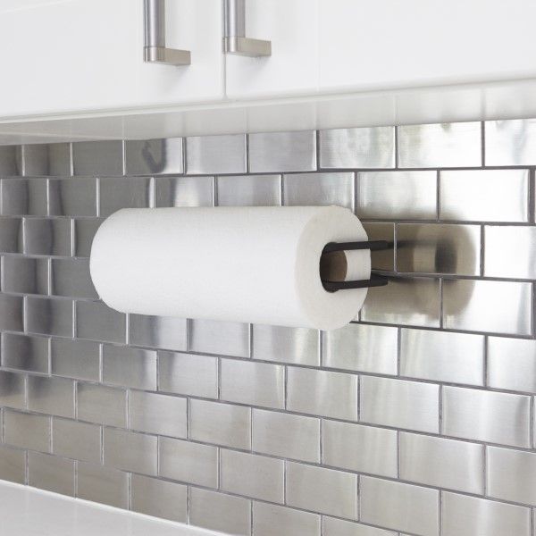 A contemporary take on a classic esthetic, this paper towel holder has the look of cast iron but it’s continuous square wire creates a graphic line that is all modern