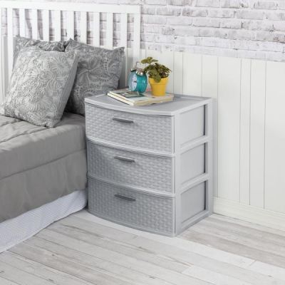 Sterilite Wide 3 Drawer Tower Grey Weave